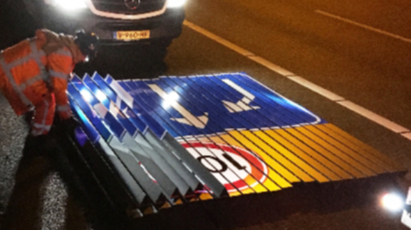 Het ontwikkelen, produceren en leveren van nieuwe rotatielamellen met aangepaste beeldfiguratie voor 22 rotatielocaties op de A28. Waarom? Door het wijzigen van de maximumsnelheid op de A28, wijzigde op alle 22 locaties ook de beeldfiguratie van de rotatielamellen.